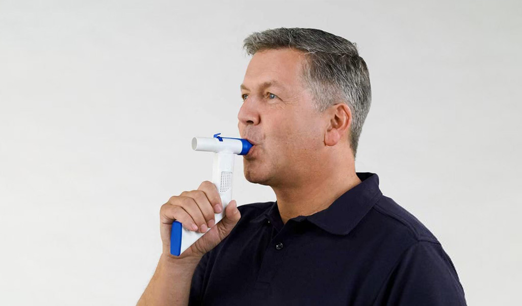 Außerdem gibt es verschiedene PEP (Positive Expiratory Pressure) Geräte (siehe Bild hier unten) bei denen meist gegen Widerstand ausgeatmet werden muss, wodurch Vibrationen entstehen, die den Bronchialschleim lösen. Des weiteren kann laut einer aktuellen Studie durch ein regelmäßiges Training, von 5 – 7 Mal 5 – 20 Minuten, mit diesen Geräten die Atemausdauer um 86%, die Lebensqualität um 21% und die Einatemmuskulatur um 55% verbessert werden. 29
