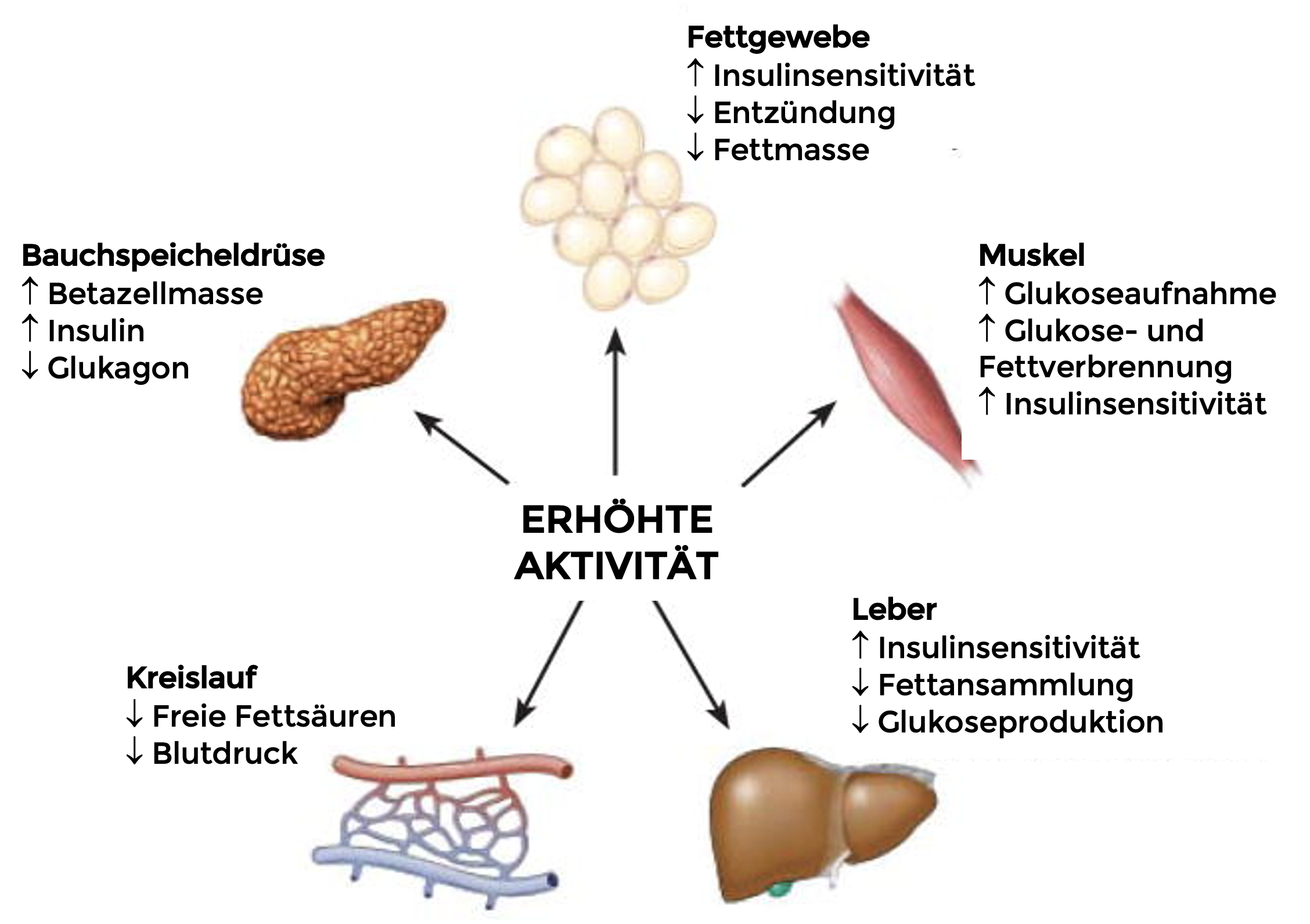 Übergewicht tritt bei 80 Prozent der Menschen mit Diabetes Typ II auf. Allerdings, selbst wenn sie übergewichtig sind, haben körperlich aktive Menschen 30 bis 50 Prozent weniger Risiko, an Diabetes zu erkranken.9