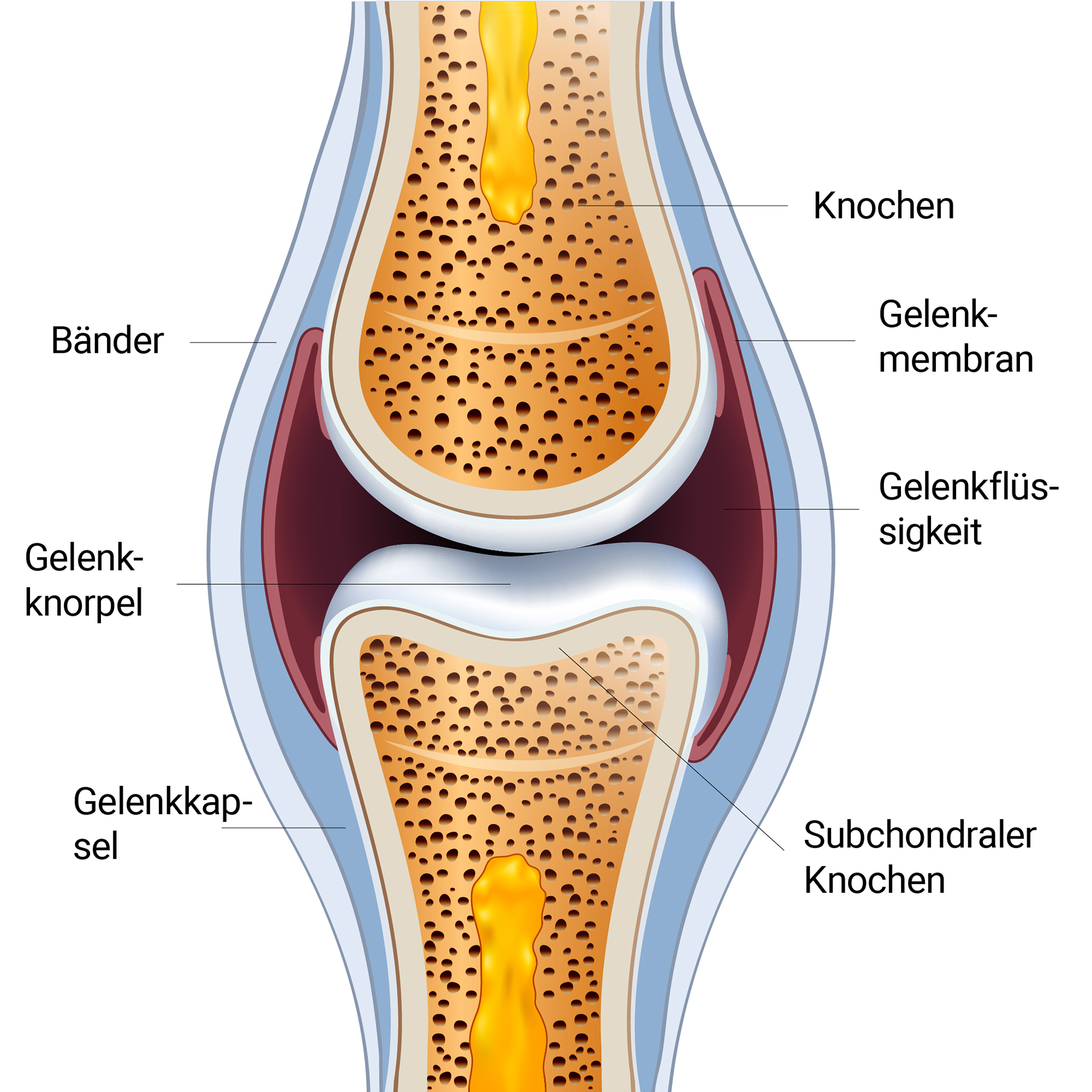 Es ist allgemein bekannt, dass der Gelenkknorpel keine Nerven- oder Blutgefäßversorgung hat und daher sämtliche Nährstoffe aus das darunter liegende Knochengewebe und Synovialflüssigkeit (Gelenkflüssigkeit) gewonnen werden müssen. 28 Die Gelenkflüssigkeit wird ausgepresst, wenn der Gelenkknorpel durch eine Last stimuliert wird und anschließend erneut aufgenommen, wenn der Druck nachlässt (Schwamm-Beispiel). 29 Mit anderen Worten: Eine Belastung durch körperliche Aktivität ist für den Knorpel dringend notwendig, um seine normale Funktion und Integrität zu erreichen. Belastung sorgt dafür, dass das Eindringen der Nährstoffe in den Gelenkknorpel gefördert und die Stoffwechselprodukte herausdrückt werden. 30