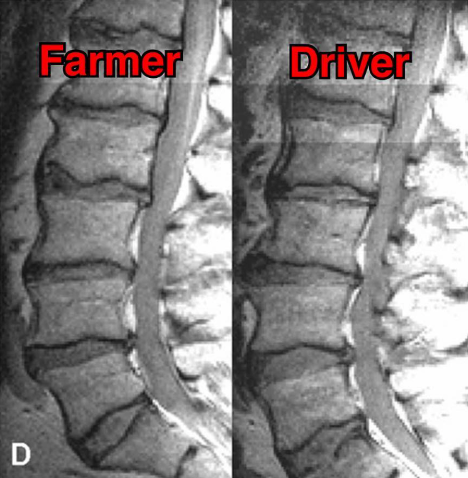 Viele machen ihre Arbeit oder ihren Sport für Arthrose verantwortlich, obwohl die meisten Forschungsergebnisse feststellen, dass unsere beruflichen und freizeitlichen Aktivitäten einen relativ geringen Einfluss auf strukturelle Veränderungen haben. Eine der interessantesten Möglichkeiten, dies zu demonstrieren, sind MRT-Studien an schmerzfreien genetisch eineiigen Zwillingen, die aber sehr unterschiedliche berufliche und freizeitliche Aktivitätsniveaus haben, und trotzdem sehr ähnlich aussehende Scans aufweisen. Studien zeigen uns diesbezüglich, dass eine Wirbelsäule, die den größten Teil des Tages sitzt, jener bemerkenswert ähnlichsieht, welche den ganzen Tag schwere Arbeit leisten muss. 11